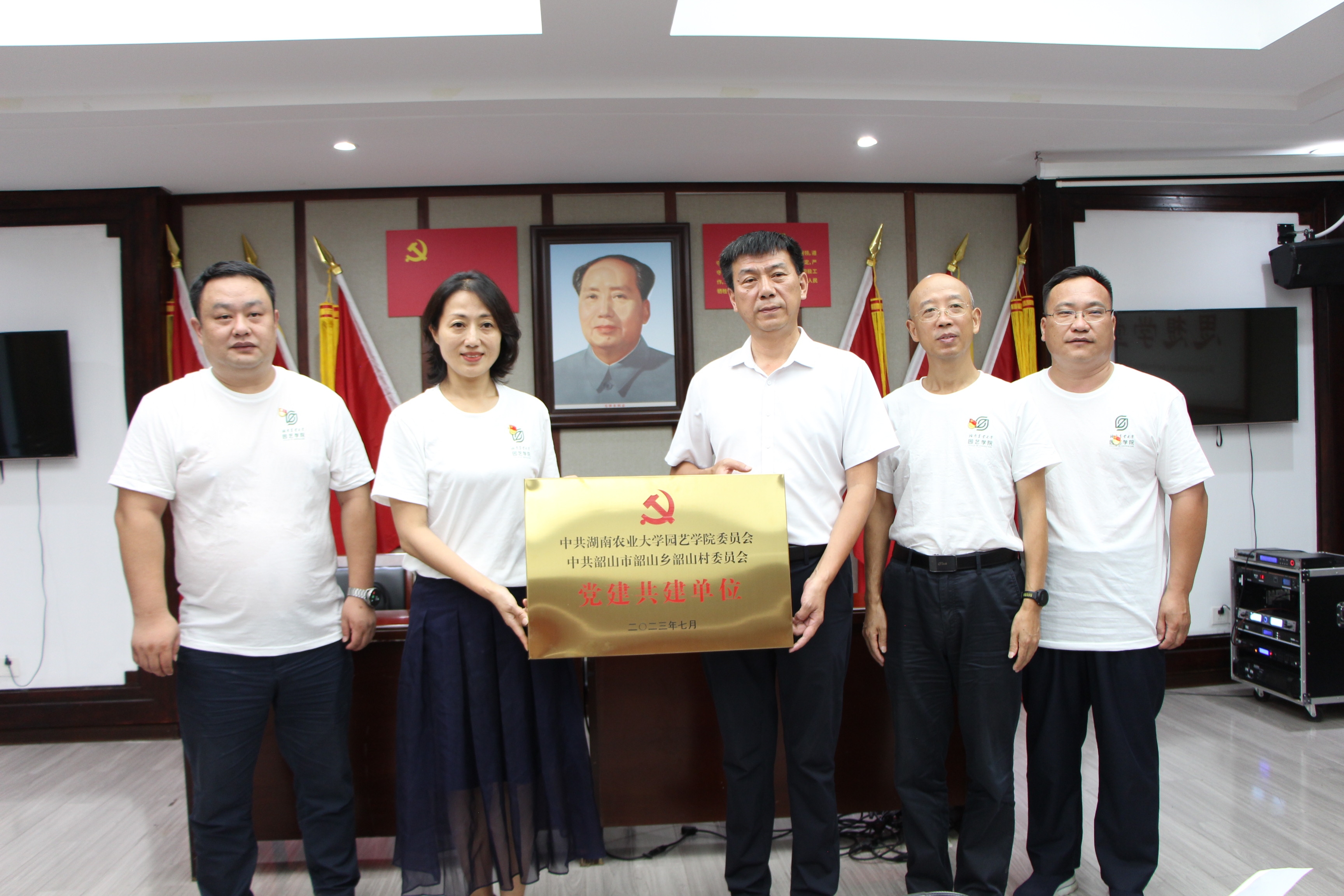 beat365平台唯一官网党委与韶山村党委共同揭牌——“党建共建单位”,希望双方加强党建联系,通过在伟人故里开展红色研学,感受浓厚的红色文化氛围,推动双方支部理论联学、思想联育、人才联培、活动联办,实现“红色+”文化党建聚合发展。在韶山市三农培训中心双方共建“‘红色+’园艺产业社会实践基地”,旨在发挥园艺学科优势,科技下乡定点帮扶,通过社会实践深入调查研究,为农业发展精准建言献策,为农民增收创收,助力韶山产业发展、乡村振兴。