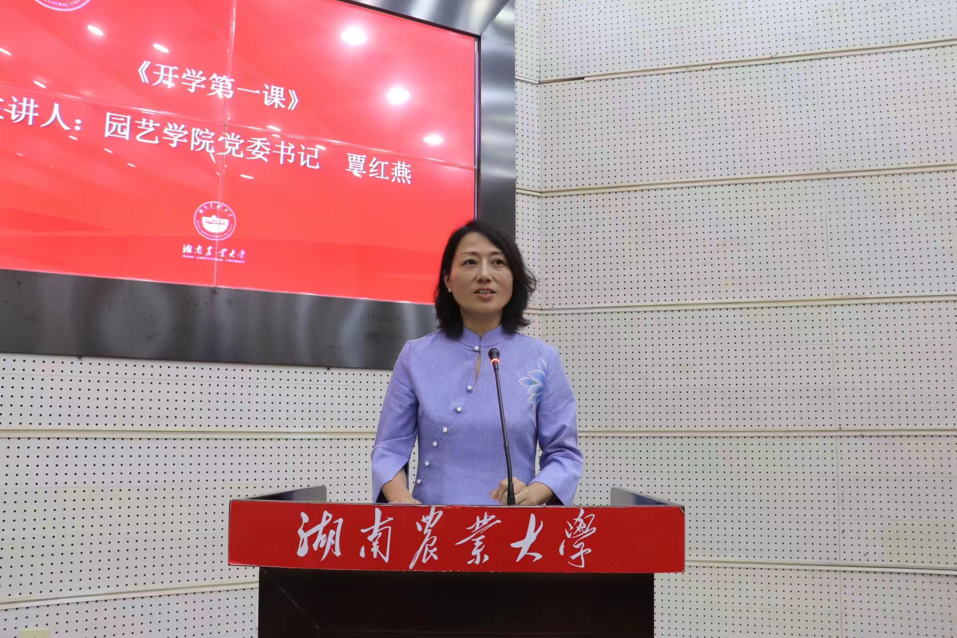 (通讯员 张梦莹)9月3日上午,党委书记覃红燕为全体2023级新生讲授《开学第一课》。覃书记以生动的阐述,带领全体师生回顾了beat365学科发展历程,介绍了beat365学科发展的最新成就,并为新生分享了邹学校院士、刘仲华院士致力强农兴农,带领团队耕耘创新的动人故事及大量优秀校友事迹,以此勉励全体同学认真学习珍惜宝贵平台,筑牢理想根基,矢志奋斗实现人生目标。身为湘农园艺人应充满骄傲感和自豪感,自觉履行时代赋予我们的光荣使命,紧跟国家农业发展,不负强农兴农使命。