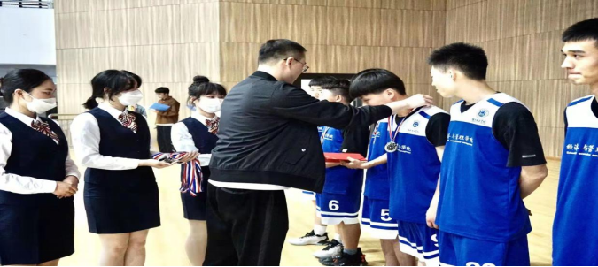 比赛结束后,颁奖仪式在全场的欢呼声中拉开帷幕。双方队员丝毫没有赛场上紧张的气氛,毫无芥蒂的互相击掌拥抱,充分展现了友谊第一比赛第二的精神,“挑战地心引力,引爆篮球魅力”篮球赛在轻松愉快的气氛中落下帷幕。本次篮球赛的圆满举行丰富了同学们的课余生活,增强了学生之间凝聚力与向心力,展现了奋发向上永不放弃的青春风采展示了团结、和谐、勇于拼搏的精神风貌。