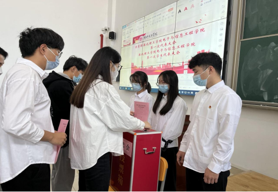 报告结束后,大会通过beat365中文登录入口院两代会选举办法、监票人名单,并由工作人员宣读计票人名单、共青团beat365中文登录入口beat365中文登录入口院委员会委员候选人及beat365中文登录入口电子信息工程学院学生委员会委员候选人名单简介,随后,采用无记名投票的方式进行差额选举。