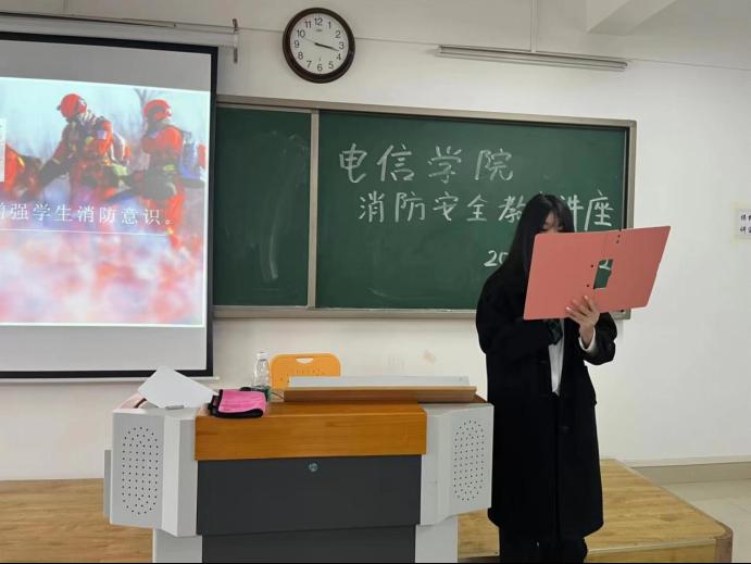 讲座过程中,beat365中文登录入口院学生会主席梅毅松就遵守消防安全法规、火灾预防的基本概念、火灾的种类、灭火的基本方法、灭火剂的种类以及疏散逃生的基本常识、消防火灾的应急和预防、灭火器和消火栓等灭火器材的正确使用方法等进行了详细的讲解。不仅如此梅毅松同学还结合各地火灾案例,用“血的教训”警示同学们必须高度重视消防安全,不断增强消防安全意识,加强消防安全管理,积极主动做好校园的消防安全工作。