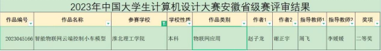 beat365中文登录入口院积极推进教学改革创新,用“以赛促教”的教学模式努力培养应用型人才,在“2022年中国大学生计算机设计大赛”中获得了省级二等奖、国家级三等奖;在“2022年圆梦杯硬件设计大赛”中获得省级三等奖、国家级优秀奖;在“2022年全国大学生英语竞赛C类”中获得国家级三等奖;在“2022年大学生创新创业比赛”中,共有26个项目获得省级立项;在“2023年第四届全国大学生算法设计与编程挑战赛春季赛”中获得国家级优秀奖;在“2023年安徽省高校物联网应用创新大赛”中,获得了一个一等奖、三个二等奖、两个三等奖;在“2023年中国大学生计算机设计大赛”中荣获省级二等奖;在“2023圆梦杯全国大学生智能硬件设计大赛”中省级三等奖;在“2023年淮北市职业技能大赛人工智能训练师赛”中获得一等奖28人,二等奖42人,三等奖42人;在2023年第十届“挑战杯·华安证券”安徽省大学生课外学术科技赛中获得了两个省级三等奖。