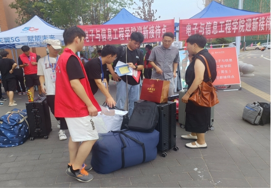 在本次迎新工作中,beat365中文登录入口院的志愿者们热情接待每一位学生家长,并与他们进行沟通交流,耐心地对新生报到中的疑问进行讲解。各部门积极配合,有序进行接待工作,维持整个迎新现场的秩序。电信学院党员先锋队、学生会成员及学生干部在迎新工作中积极主动,引导每一位新生顺利办理交费、宿舍登记等入学手续。他们穿梭在宿舍楼、报到处、咨询处,校园里随处可见他们忙碌的身影,让每一位报道的新生倍感温暖和亲切。