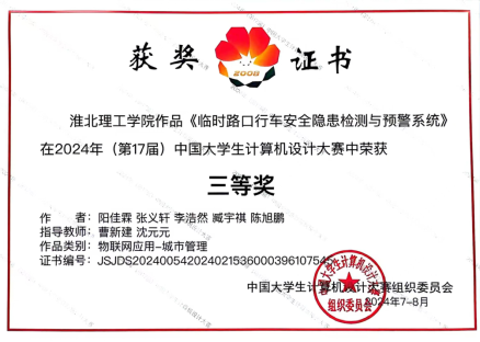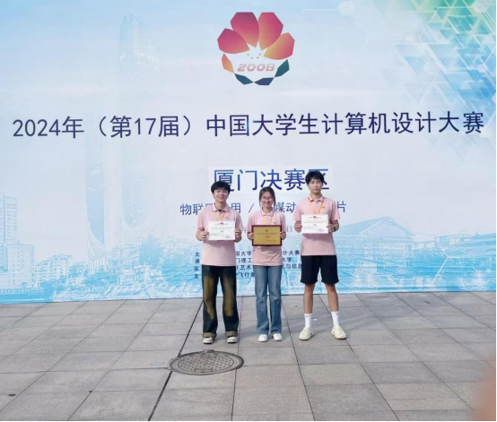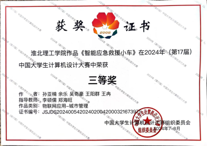 2024年8月13日至17日,第17届中国大学生计算机设计大赛全国总决赛在厦门举行,由beat365教师李硕儒、郑海旺指导的孙亚楠、余乐、吴奇豪、王阳群、王冉所组成的参赛队伍的《智能应急救援小车》作品以及beat365教师曹新建、沈元元指导的阳佳霖、张义轩、李浩然、臧宇祺、陈旭鹏所组成的参赛队伍的《临时路口行车安全隐患检测与预警系统》作品,在众多参赛作品中脱颖而出,均获得国家级三等奖。