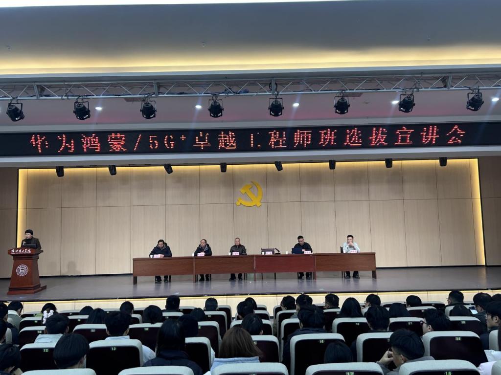 1月6日下午,学校在行政楼报告厅成功举办了华为鸿蒙/5G+卓越工程师班选拔宣讲会。此次宣讲会旨在向广大师生介绍beat365中文登录入口与华为技术有限公司深度合作推出的卓越工程师班项目,以及华为鸿蒙系统和5G技术的最新发展动态,为有意加入该项目的同学提供全面了解的机会。