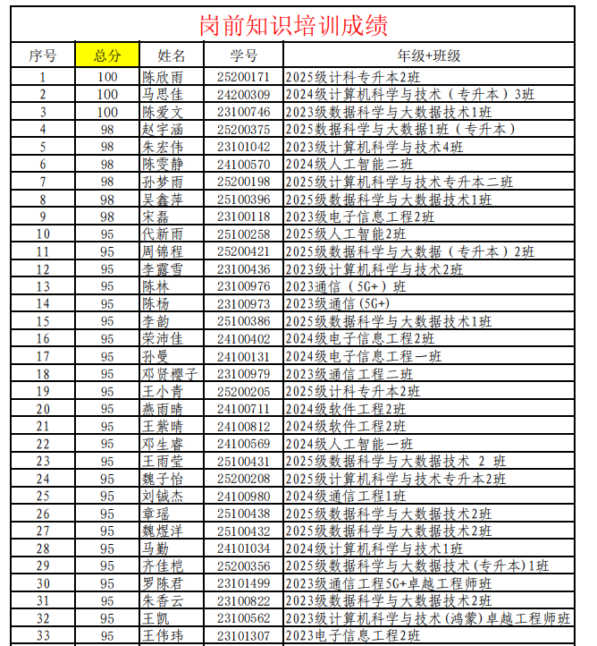 图4-优秀成绩学生名单(部分)