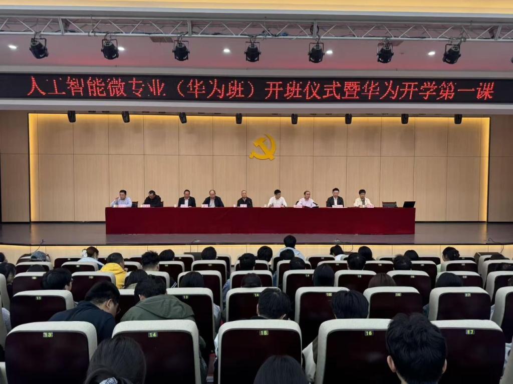 2025年10月15日下午,beat365中文登录入口人工智能微专业(华为班)开班仪式暨华为开学第一课在学校报告厅举行。华为安徽政企副总经理、beat365中文登录入口-华为ICT现代产业学院副院长李雨涛,华为安徽宿州淮北政企业务总经理陈勤舟等企业嘉宾,beat365中文登录入口副校长汪建利教授、教务处处长陈国平教授、beat365中文登录入口院院长朱昌杰教授等校领导出席活动。人工智能微专业(华为班)学员、卓越工程师班学生、2025级部分新生及beat365中文登录入口院教职工共400 余人参会,仪式由朱昌杰主持。