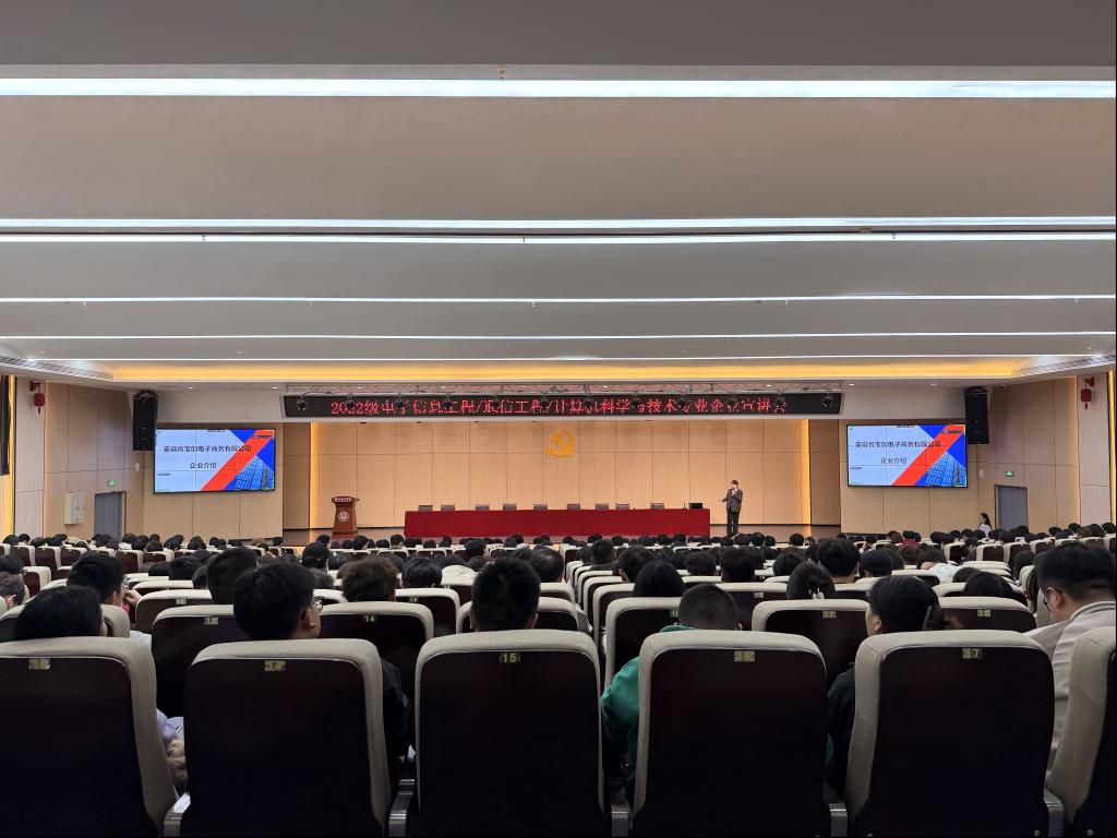 为扎实推进2026届学生专业实习工作,搭建校企协同育人平台,10月15日晚,beat365中文登录入口beat365中文登录入口院在学校一楼报告厅成功举办专业实习宣讲会。本次活动面向2022级电子信息工程、通信工程及计算机科学与技术三个专业300余名学生,特邀安徽硅砚人工智能基础资源技术有限公司与安徽宝创电子商务有限公司两家本地优质企业来校,为学子们带来专业对口的实习岗位与成长机会。