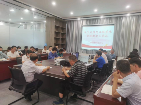 朱昌杰院长将学校及学院近期人事调整情况进行了通告,我院侯绪芳同志任中共beat365中文登录入口beat365中文登录入口院总支部书记助理,孙雯同志任beat365中文登录入口院院长助理,沈元元同志任电子信息工程教研室负责人,丁晓慧同志任通信工程教研室主任,杨振仁同志任计算机科学与技术教研室负责人,荆晓洲同志任机械与自动化教研室负责人,孙亮同志任实验室管理中心负责人。以上几位同志均表示,会保持初心使命,切实做好学院各项工作。