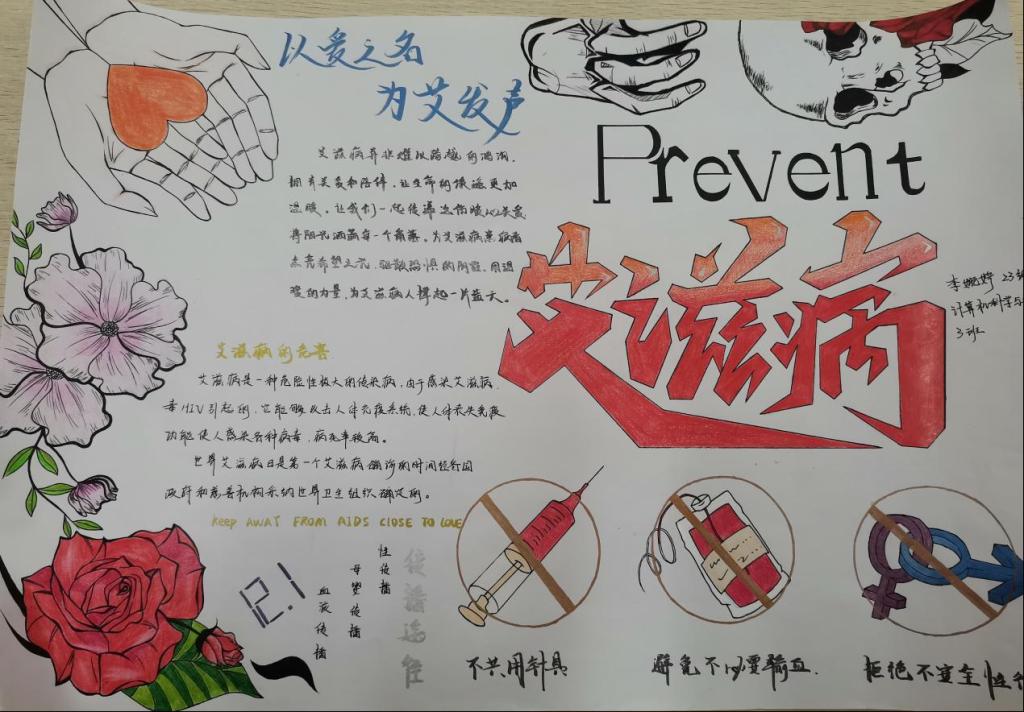 为提高学生对艾滋病的认识,倡导健康生活方式,促进校园防艾工作的深入开展。beat365中文登录入口院举办了以“预防艾滋,珍爱生命”为主题的手抄报活动。