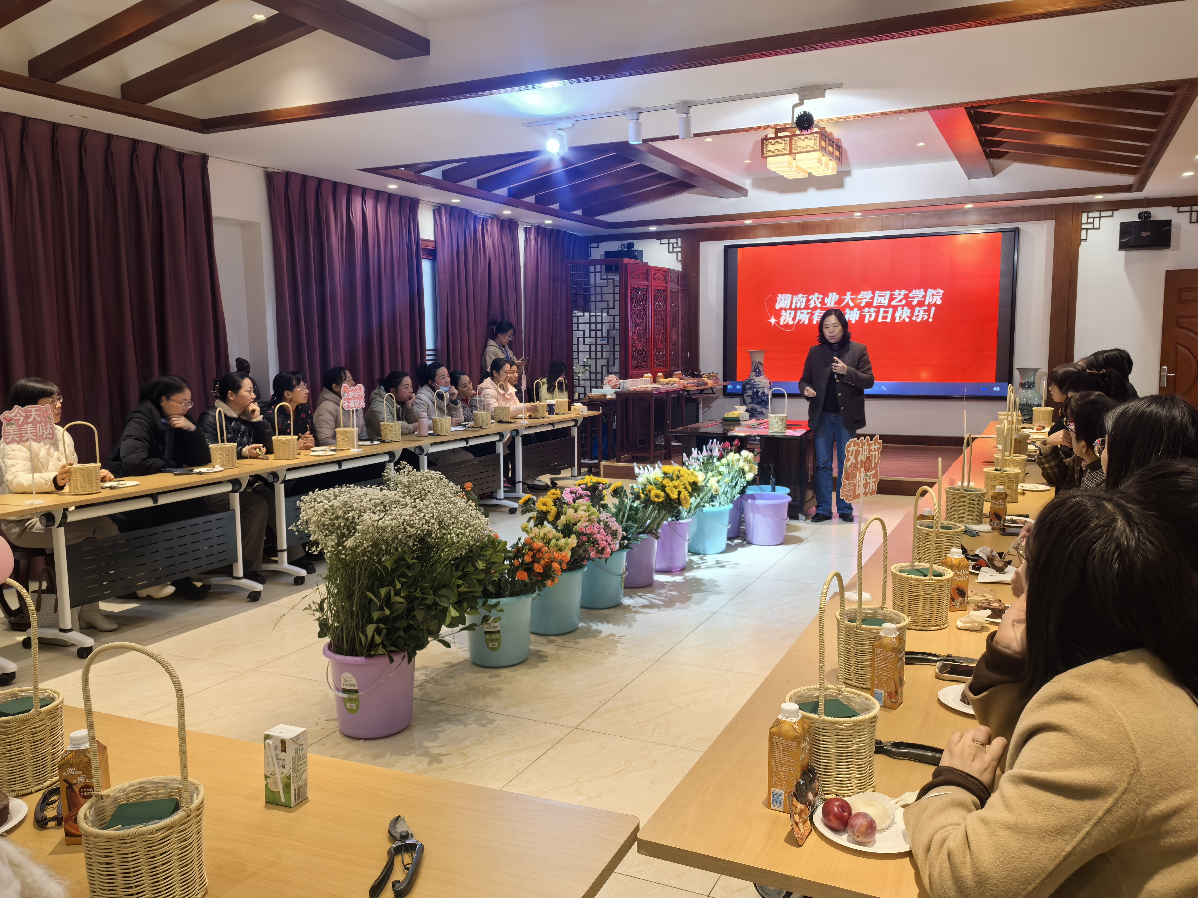 活动伊始,学院党委副书记、工会主席喻诚为全体女老师们送上了节日祝福和问候,她表示:“各位女老师是学院教学、科研、管理、服务等方面的中坚力量,你们用智慧和汗水诠释了新时代女性的风采,用责任和担当撑起了事业和家庭的‘半边天’。今天,我们以花为媒,以花会友,共同庆祝属于我们女性自己的节日。”
