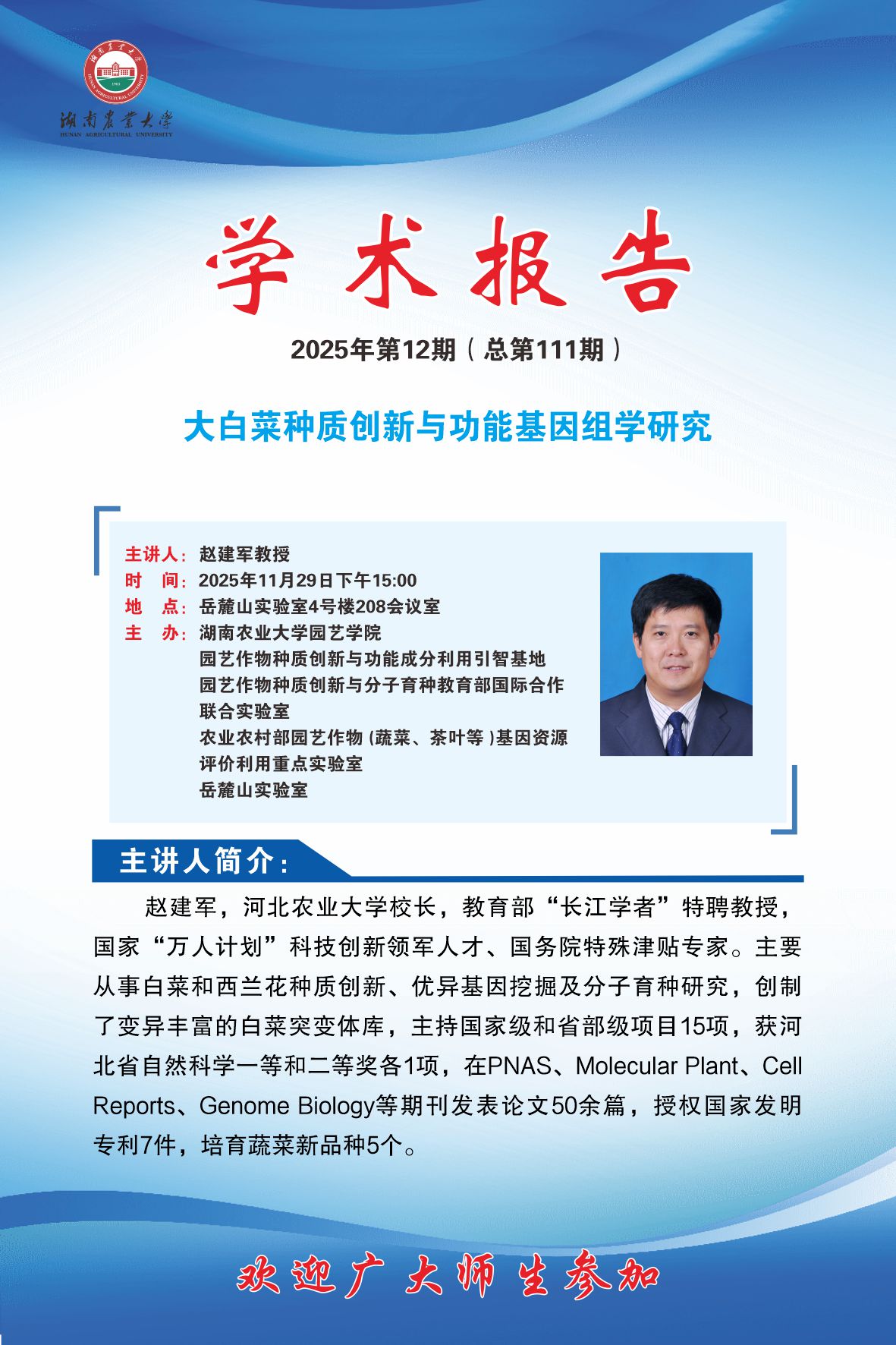 园艺讲坛第112期-名师讲坛:大白菜种质创新与功能基因组学研究