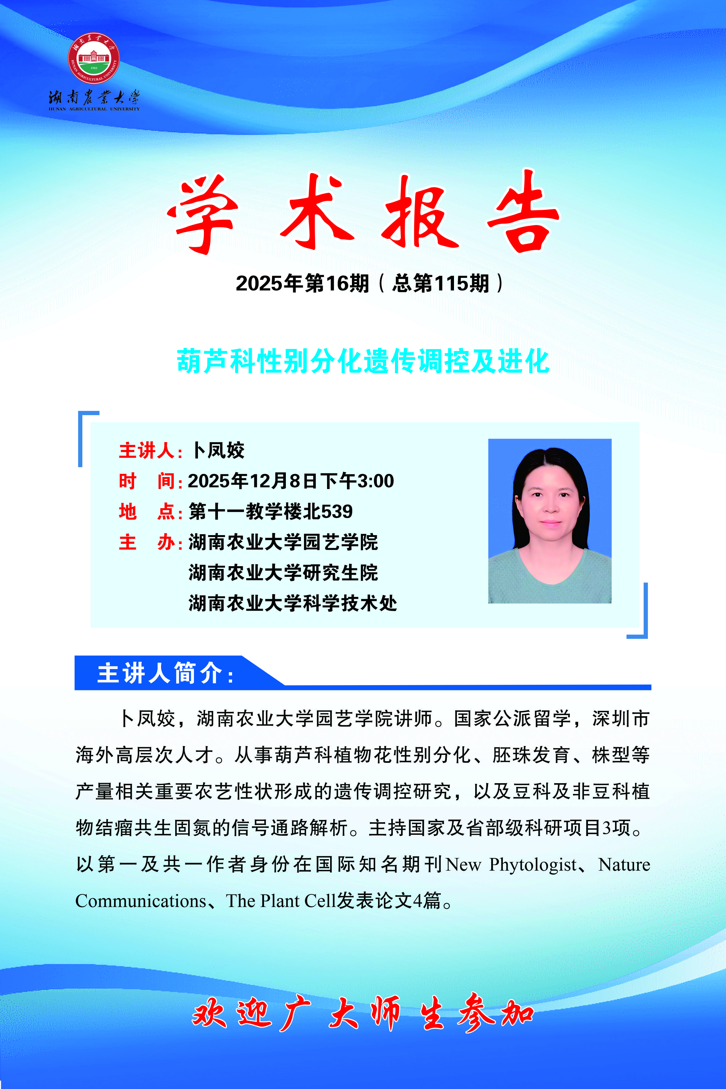 园艺讲坛第115期-青年学者讲坛:葫芦科性别分化遗传调控及进化
