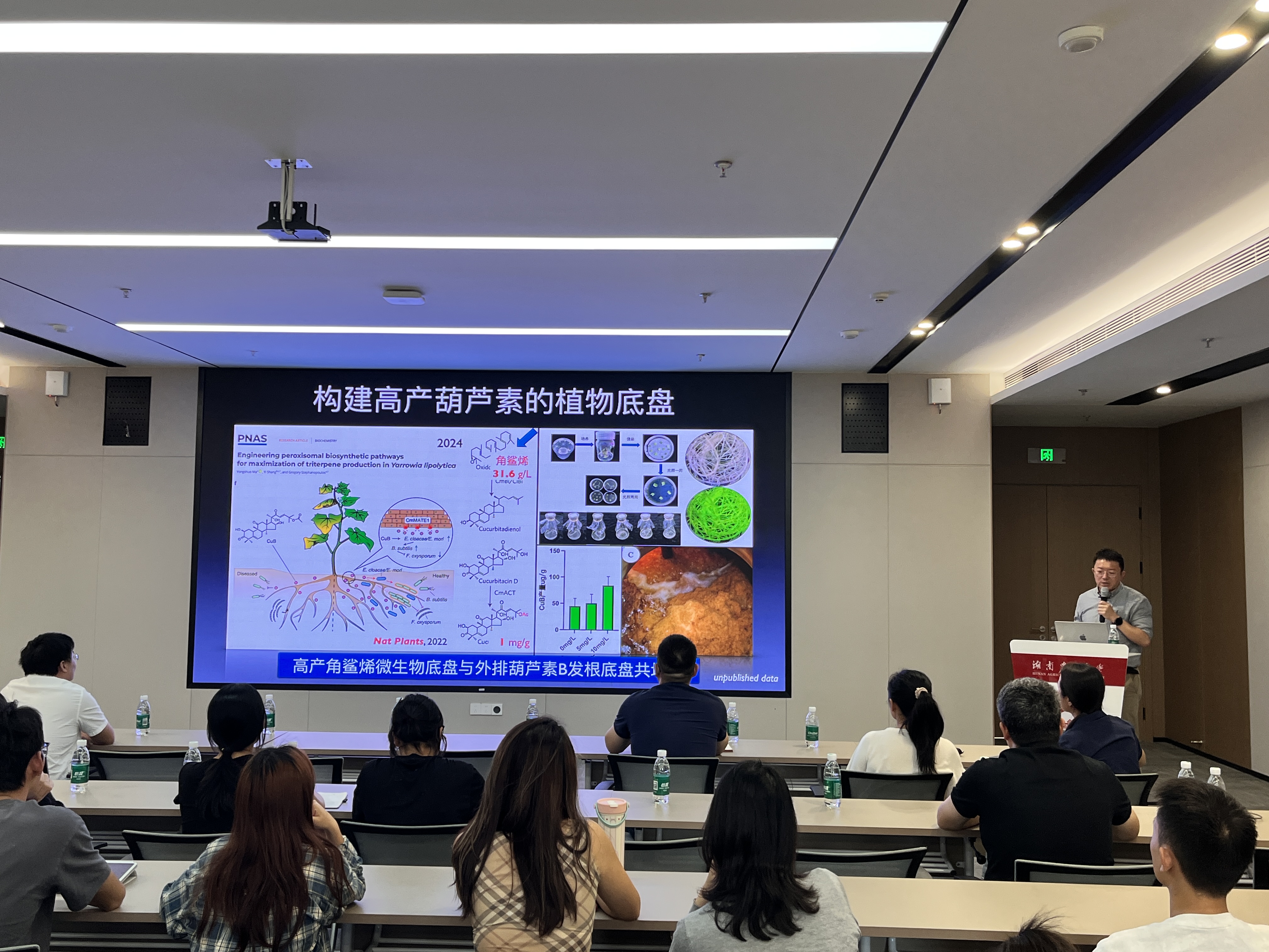 尚轶教授以《REvoDesign:a data-driven and structure-guided tool for plant protein engineering and breeding》(REvoDesign:一种基于数据驱动和结构引导的植物蛋白质工程与育种工具)为题深入阐述。蛋白质作为生命功能的执行者,如何高效、精准地设计改造功能蛋白以赋予农作物抗逆、高产、高营养等优良性状,是当前农业生物技术研究的核心挑战。尚轶教授团队开发的REvoDesign可融合先进数据分析技术与蛋白质结构信息,属于优化的蛋白质定向设计软件。目前,利用 REvoDesign已成功实现微生物的高效次生代谢产物合成及作物功能蛋白的定向改良,标志着农业育种从 “传统育种”向“精准智能设计”的革命性跨越,为未来作物改良与新品种培育提供了全新思路。