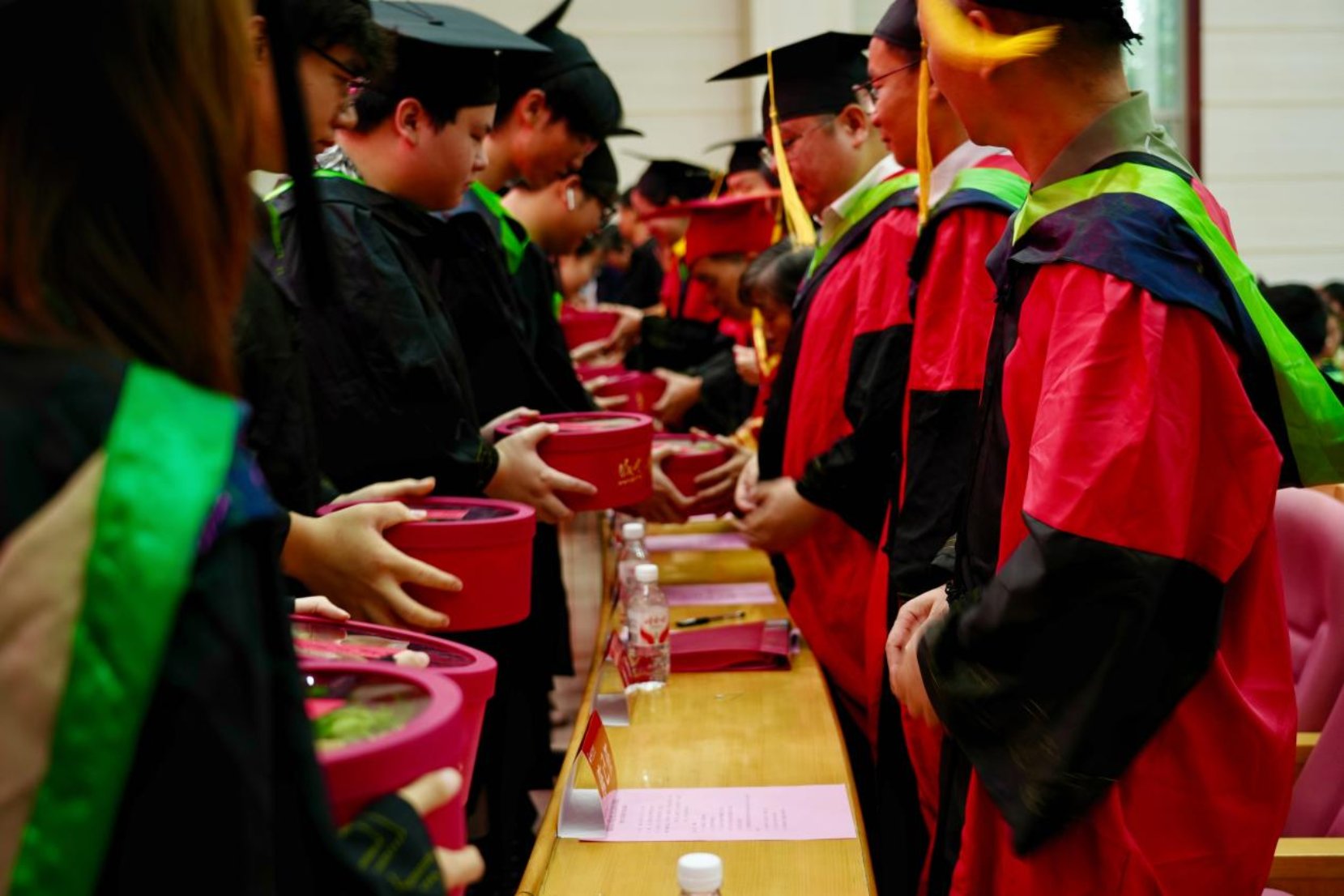 2025届毕业生代表向母校和恩师献上寓意深刻的“束脩六礼”:芹菜表"业精于勤"、龙眼寓"启窍生智"、莲子示"苦心教学"、红枣祈"早日高中"、红豆期"宏图大展",风干腊肉则具象化表达了湘农人“朴诚奋勉”的基因与担当。这份礼物不仅传达对母校和师长感恩之情,也展现了继承袁隆平院士“禾下乘凉梦”和邹学校院士“辣椒红遍天下”使命的延续。